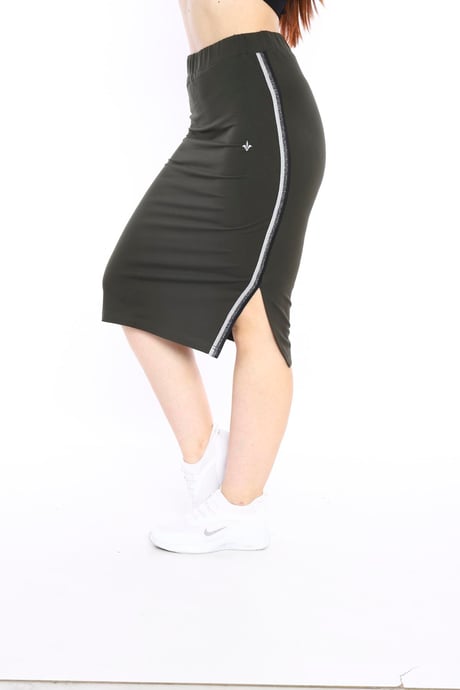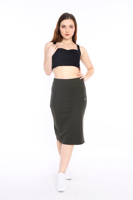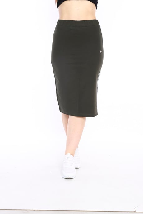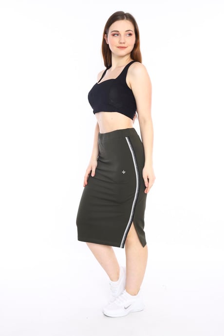 Женская спортивная юбка Escetic Хаки с разрезами, 2 нитки, шнуровка, миди-длина, удобный стиль, 76% хлопок, 16% полиэстер, 8% лайкра