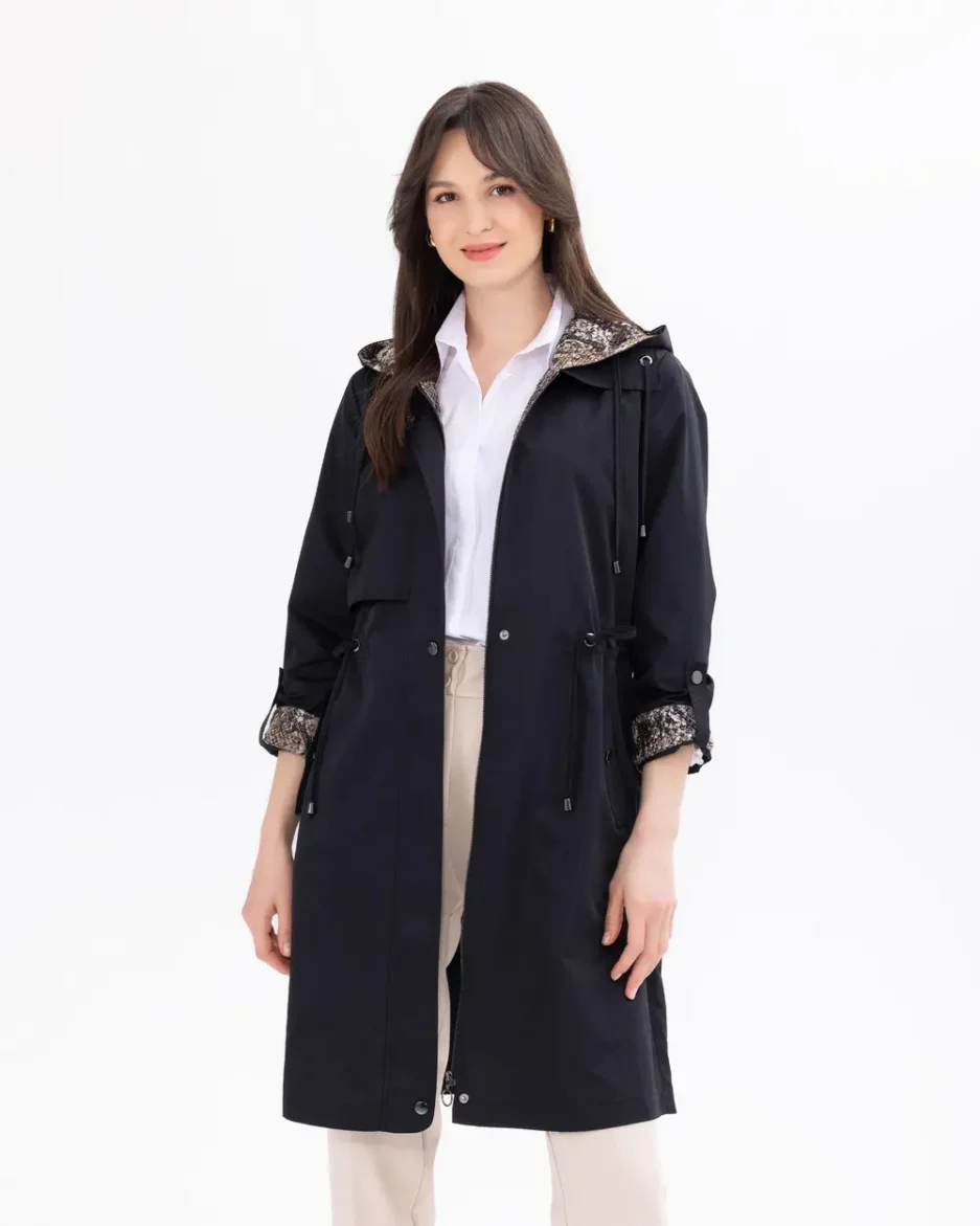 Женский тренчкот с леопардовым подкладом и капюшоном, стильный и функциональный, идеален для любого сезона. Доступен в размерах 38-44, цвета: верблюжий, черный
