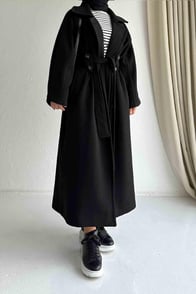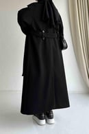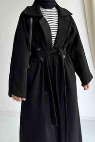 Женское черное кашемировое пальто с застежками и поясом, идеальный выбор для зимнего гардероба