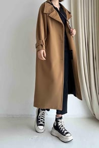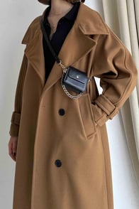 Женское пальто с поясом, кнопками и воротником из кашемира, шикарный бежевый цвет 40/42, 36/38